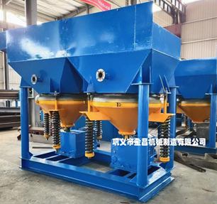 為什么鋸齒波跳汰機也能選大顆粒螢石呢?因為鋸齒波跳汰機改進以后,有較大的沖程,并且有了較大的沖程系數(shù),所以在分選大顆粒礦石的時候也具備優(yōu)勢。這種跳汰機比傳統(tǒng)跳汰機相對省水,因為這種跳汰機泄壓口少,所以能達到省水的目的。目前在內(nèi)蒙大家都是用JT4-2鋸齒波跳汰機進行大顆粒螢石的處理,一般情況下用這種跳汰機分選的是1-2公分之間的顆粒,因為分選螢石粒度范圍越大的話,分選的可靠性就會變差,分選的質(zhì)量就會降低,這是賣了多年跳汰機總結出來的寶貴經(jīng)驗。